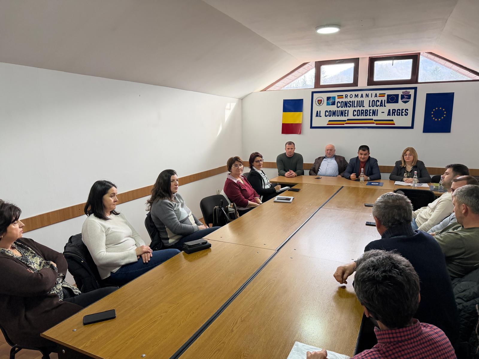 Vicepreședintele Consiliului Județean Argeș, Adrian Dumitru Bughiu, a avut astăzi, la Corbeni, o întâlnire de lucru cu deținători de pensiuni din zonă, dedicată modului de funcționare a Organizației de Management al Destinației „Regatul Argeșului".