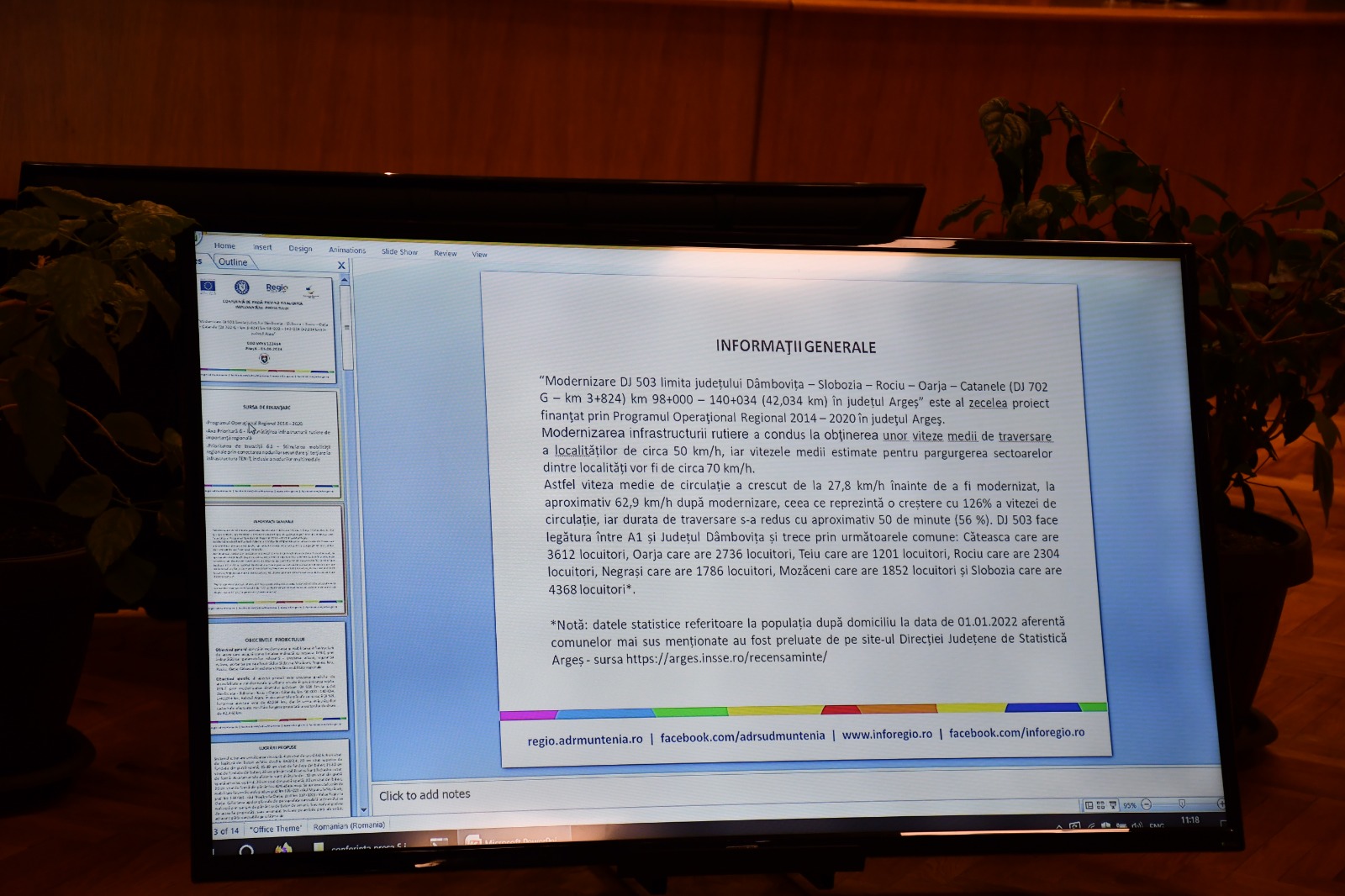- Conferința de presă privind finalizarea proiectului "Modernizare DJ 503 limita județului Dâmbovița – Slobozia – Rociu – Oarja – Catanele (DJ 702 G – km 3+824) km 98+000 – 140+034 (42,034 km) în județul Argeș”