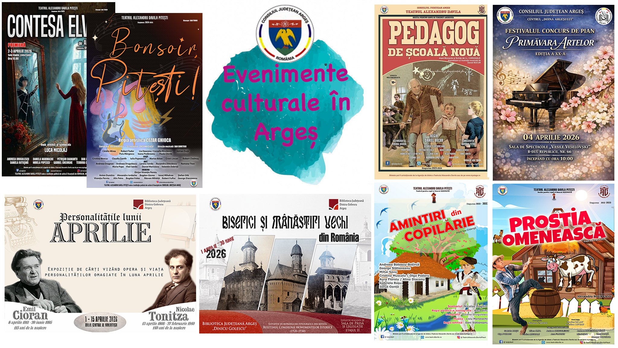 Consiliul Județean Argeș vă invită să participați la activitățile cultural-artistice organizate de instituțiile de cultură subordonate în perioada 02 - 10 aprilie 2026.