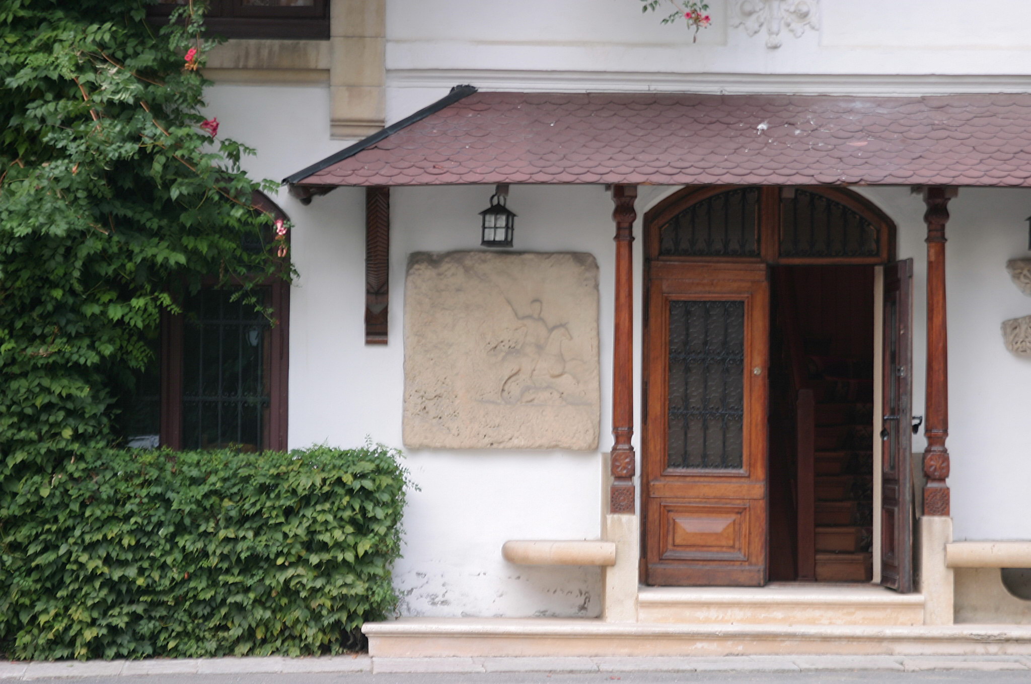 Ancadramentele laterale ale uşilor de la intrare în biserică au ornamente sculpturale de un rafinament deosebit. Bolta pridvorului este semicilindrică transversală, având la mijloc o cupolă sferică de dimensiuni modeste.