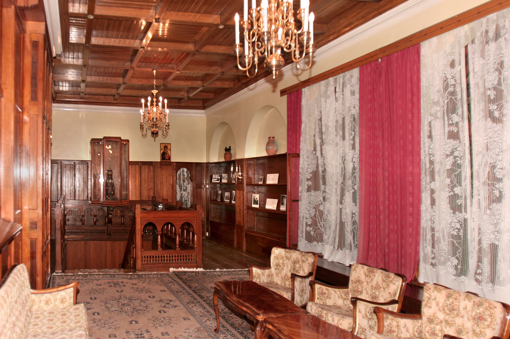 Este singura încăpere unde s-au păstrat în original două uşi de acces precum şi obloanele şi fereasta cu geamurile de cristal. Uşile sunt realizate din trei esenţe de lemn: stejar, cireş şi se pare lemn de trandafir. Încăperea era mobilată în stil oriental, de la jumătatea camerei pornea un divan pe care se aflau câteva perne de catifea şi o narghilea. Aici se împodobea în fiecare an bradul de Crăciun. Soba (ca de altfel toate celelalte sobe din casă care s-au păstrat) este clădită din plăci de teracotă (cahle) săseşti, de la Bistriţa.