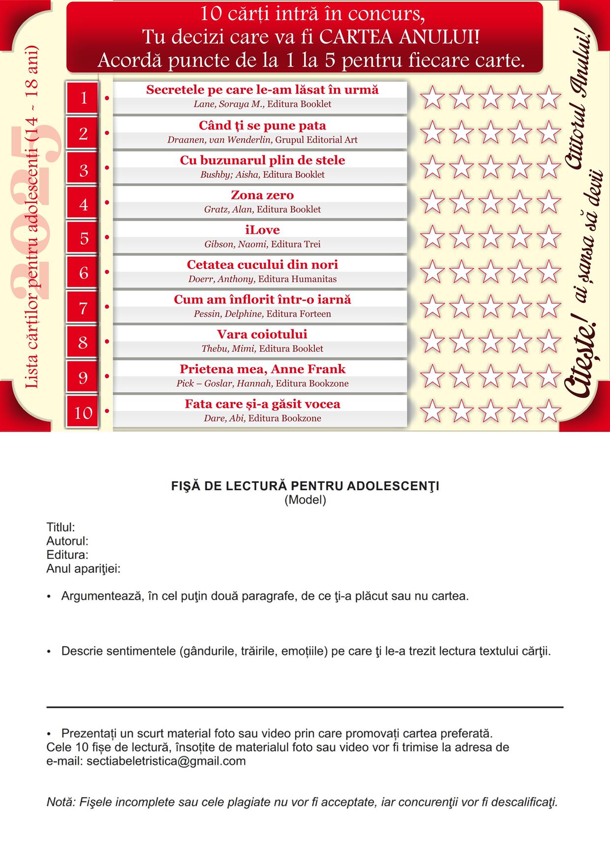 Secția Beletristică: e-mail: sectiabeletristica@gmail.com, tel. 0771 209 722