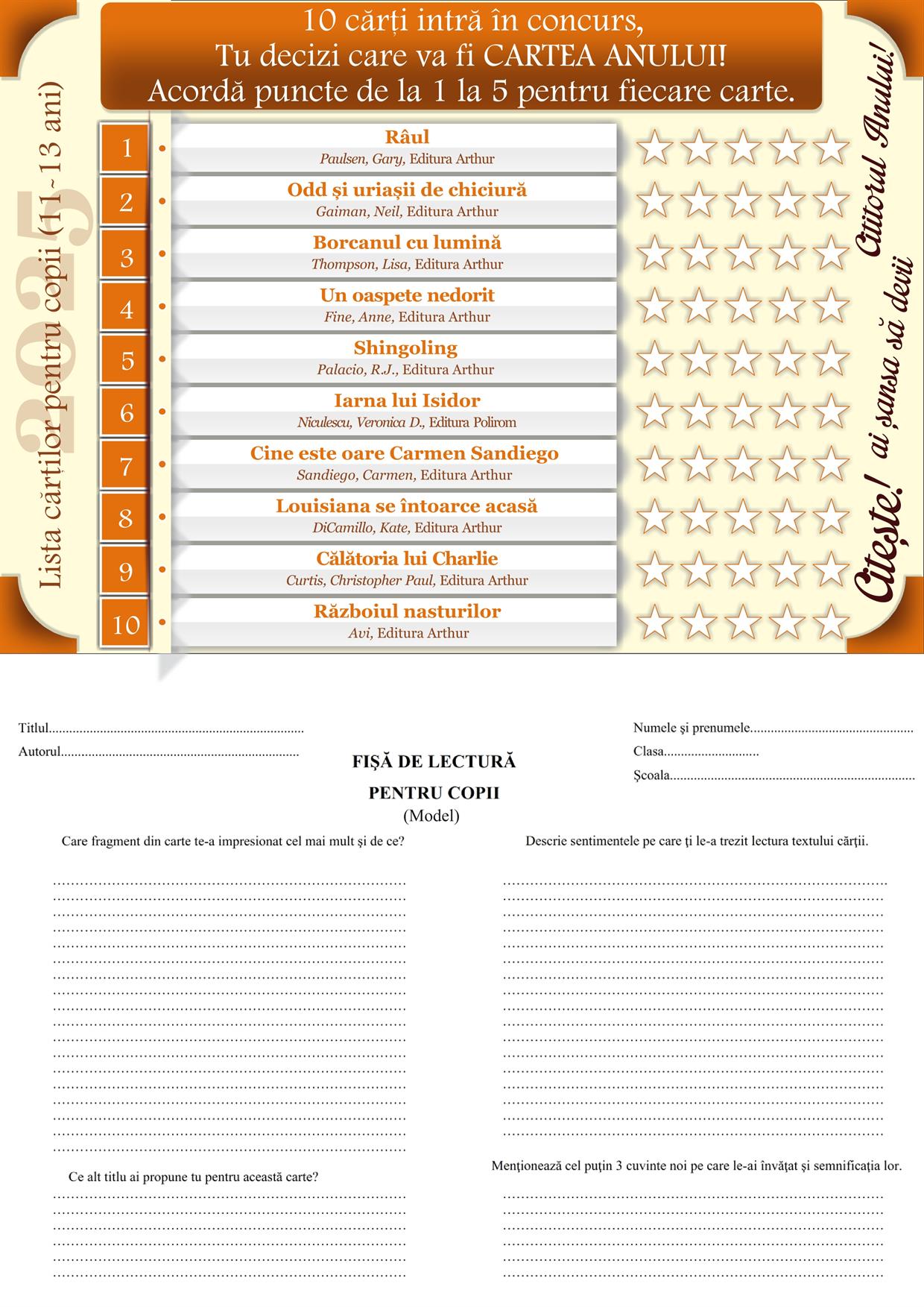 -Cea mai bună fișă de lectură,